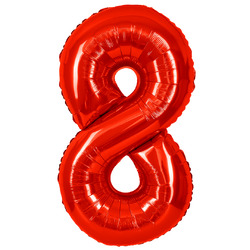 Шар (40"/102 см) Цифра, 8, Красный, Металлик, 1 шт. в уп.