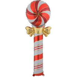 Шар (59"/150 см) Фигура, Леденец трость с бантом, Красный/Золото, 1 шт. в уп.