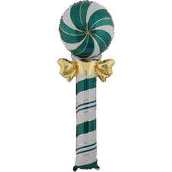 Шар (59"/150 см) Фигура, Леденец трость с бантом, Зеленый/Золото, 1 шт. в уп.