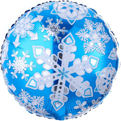 Шар (18"/46 см) Круг, Снежинки, Голубой, 1 шт. в уп.