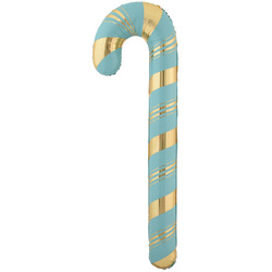 Шар (29"/74 см) Фигура, Леденец трость (надув воздухом), Голубой/Золото, 1 шт. в уп.