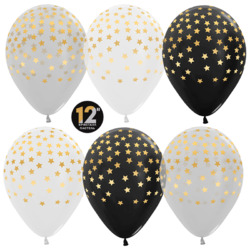 Шар (12"/30 см) Звездочки, Ассорти (005/080/390), кристалл, 5 ст, 25 шт.