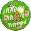 Шар (18"/46 см) Круг, Капибары, Happy Birthday, 1 шт.Воздушный шар из полимерной пленки, идеально подходит для детских игр и забав.