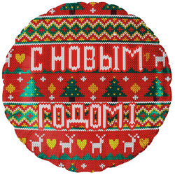 Шар (18"/46 см) Круг, С Новым Годом! (новогодний орнамент), Красный, 1 шт. в уп.