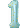 Шар (34"/86 см) Цифра, 1 Золотые короны, Голубой, 1 шт. в уп.Воздушный шар из полимерной пленки, идеально подходит для детских игр и забав.