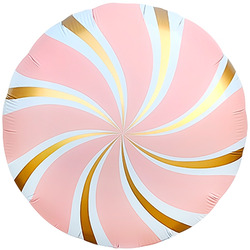 Шар (18"/46 см) Круг, Леденец, Розовый/Золото, Сатин, 1 шт.