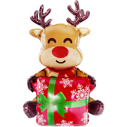 Шар 3D (59"/150 см) Фигура, Олень с подарком, 1 шт. в уп.