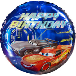 Шар (18"/46 см) Круг, Гоночные машинки, Happy Birthday, 1 шт. в уп.