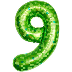 Шар (40"/102 см) Цифра, 9 Пиксели, Зеленый, 1 шт. в уп.