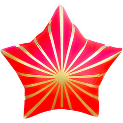 Шар (18"/46 см) Звезда, Золотые грани, Красный, Сатин, 1 шт.