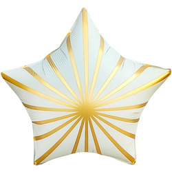 Шар (18"/46 см) Звезда, Золотые грани, Белый, Сатин, 1 шт.