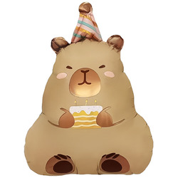 Шар с клапаном (16"/41 см) Мини-фигура, Капибара с тортиком, 1 шт.