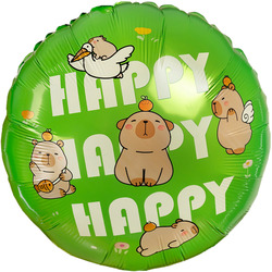 Шар (18"/46 см) Круг, Капибары, Happy Birthday, 1 шт.