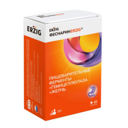 Феснарин ЭРЦИГ Пищеварительные ферменты+гемицеллюлаза+желчь, 550 мг, 40 шт, таблетки