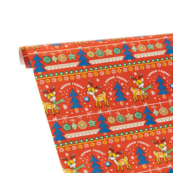 Упаковочная бумага (0,7*1 м) Оленята, Красный, 1 шт.