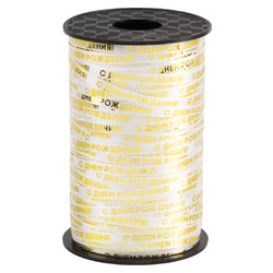 Лента полипропиленовая (0,5 см*250 м) С Днем Рождения, Золото, Металлик, 1 шт.