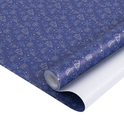 Упаковочная бумага, Крафт 60гр (0,68*10 м) Новогодние елочки, Синий, 1 шт.