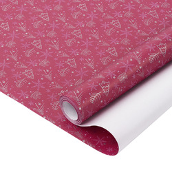 Упаковочная бумага, Крафт 60гр (0,68*10 м) Новогодние елочки, Красный, 1 шт.