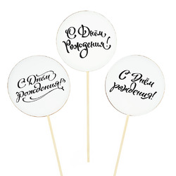 Топпер, Круг, С Днем Рождения!, Белый, 7*30 см, 3 шт.