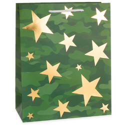 Пакет подарочный, 210гр, Золотые звезды, Камуфляж, Металлик, 16*12*7 см, 1 шт.