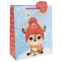 Пакет подарочный, 210гр, С Новым Годом! (олененок), Металлик, 70*50*20 см, 1 шт.