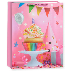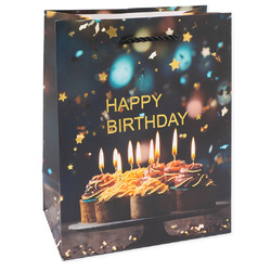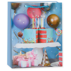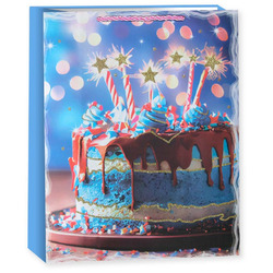 Пакет подарочный, 210гр, Торт на День Рождения, Дизайн №4, с блестками, 24*18*8,5 см, 1 шт.