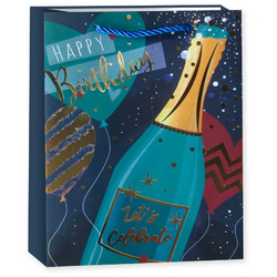 Пакет подарочный, 210гр, Happy Birthday, Дизайн №1, Металлик, 32*26*10 см, 1 шт.