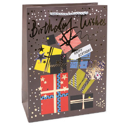 Пакет подарочный, 210гр, Happy Birthday, Дизайн №3, Металлик, 32*26*10 см, 1 шт.