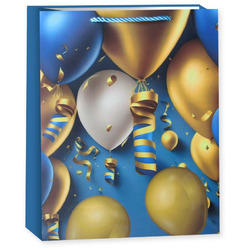Пакет подарочный, 210гр, Фееричный день рождения, Дизайн №4, Металлик, 32*26*10 см, 1 шт.