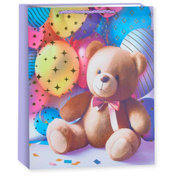 Пакет подарочный, 210гр, Мишка с шариками, Дизайн №2, Металлик, 40*31*12 см, 1 шт.