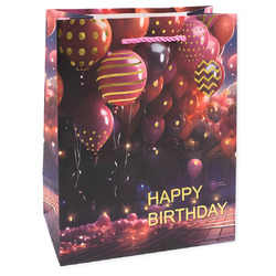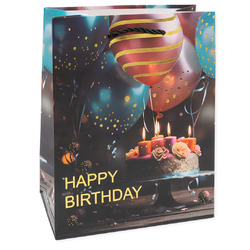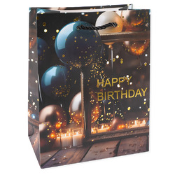 Пакет подарочный, 210гр, Фееричный день рождения, Дизайн №2, Металлик, 23*18*10 см, 1 шт.