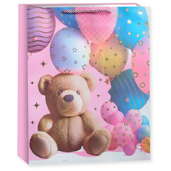 Пакет подарочный, 210гр, Мишка с шариками, Дизайн №1, Металлик, 32*26*10 см, 1 шт.