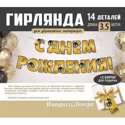 Гирлянда С Днем Рождения! (воздушные шары), Золото, 350 см, 1 шт.