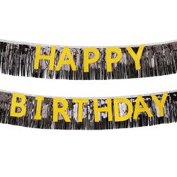 Гирлянда с мишурой Happy Birthday, Черный/Золото, с блестками, 300 см, 18 см, 1 упак.