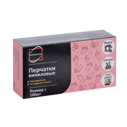 Перчатки виниловые неопудренные р L, 50 шт, пара