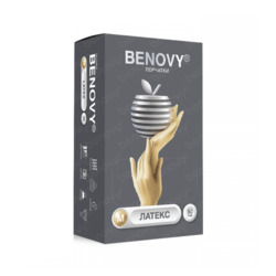 Перчатки Benovy смотр/латекс/нестерил/неопуд текстур на пальцах с однокр хлоринацией M, 50 шт, пара натур цвет