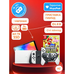 Nintendo Switch OLED 64 GB (белый) (AZ) + Геймпад Pro Controller Super Smash Bros. + Игра New Super Mario Bros U Deluxe