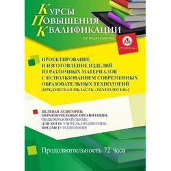 Проектирование и изготовление изделий из различных материалов с использованием современных образовательных технологий (предметная область «Технология») (72 ч.)