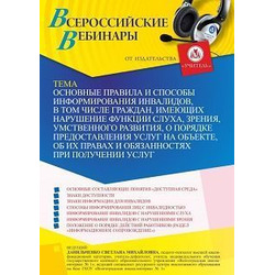Вебинар «Основные правила и способы информирования инвалидов, в том числе граждан, имеющих нарушение функции слуха, зрения, умственного развития, о порядке предоставления услуг на объекте, об их права