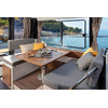 • Комплектация "Premiere" включает: носовая электрическая якорная лебедка, душ на кокпите (горячая и холодная вода), светодиодная подсветка салона и кают, светодиодная подсветка пола кокпита, электрические транцевые плиты "Lenco", разъем для подключения берегового питания 220 V с зарядным устройством, нагреватель воды 220 V, занавески на окна рубки, кормовые швартовые утки для перекрестной швартовки в доке