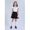 Юбка 2757-524-ТВК-340 (черный)Классическая школьная юбка из костюмного трикотажа для девочки. Модель на широком трикотажном поясе. Изделие легко надевается через голову, юбка без молнии и застежек. Низ юбки декорирован пышной оборкой.