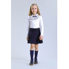 Блузка 2681-524-ТХР-2*2/260 (белый отд синий) Нарядная блузка из кашкорсе. Модель с длинным рукавом и высокой горловиной. Ворот украшен бантиком и оборками.
