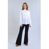 Блузка FSL-461-524-ВПШС (молочный) Блузка из искусственного шелка. Воротник-стойка и левая часть планки украшены оборкой. Манжеты на резинке. Модель струится по фигуре. Застежка на ряд красивых пуговиц.