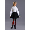 Юбка FSL-289-521 (черный) ПОДТЯЖКИ ИДУТ В КОМПЛЕКТЕ. Стильная школьная юбка с подтяжками для девочки. Красивая юбка-солнце с высоким поясом. Трикотажные вставки по бокам обеспечивают идеальную посадку по фигуре. По бокам есть карманы. Справа очаровательная съемная подвеска в виде туфельки. Юбка застегивается спереди на фирменные пуговицы.