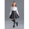 Юбка FSL-289-521 (серый)ПОДТЯЖКИ ИДУТ В КОМПЛЕКТЕ.Стильная школьная юбка с подтяжками для девочки. Красивая юбка-солнце с высоким поясом. Трикотажные вставки по бокам обеспечивают идеальную посадку по фигуре. По бокам есть карманы. Справа очаровательная съемная подвеска в виде туфельки. Юбка застегивается спереди на фирменные пуговицы.