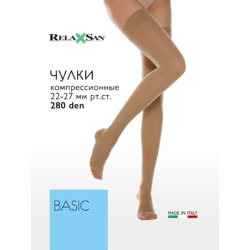 Компрессионные чулки Relaxsan BASIC 280 den c открытым носком (арт. 1470S). цвет телесный, размер 5