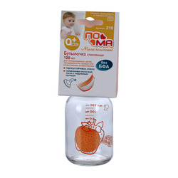 Бутылочка Пома стеклянная с силикон соской/медлен поток с 0 мес оранжевая (210), 120 мл