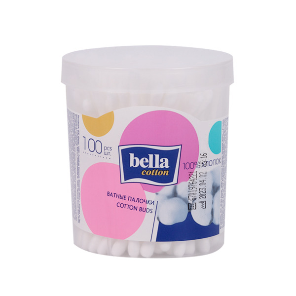 Ватные палочки bella cotton в пластик круглой упаковке, 100 шт