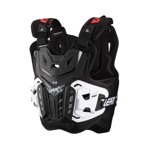 Высокотехнологичный панцирь, защищающий грудь, спину и ребра. Спроектирован из нескольких многослойных 3D панелей, удобно облегающих тело райдера. Для защиты груди использован фирменный вентилируемый материал от Leatt - 3DF Airfit. Особенность 3DF - мягкий и комфортный вначале, он способен к мгновенной трансформации жесткости при ударе. Основа оболочки панциря 4.5 сделана из особого полиэтилена высокой плотности (HDPE), поглощающая мелкие удары от камней и других объектов, летящих в тело при внедорожной езде. Особенности панциря Leatt 4.5:
