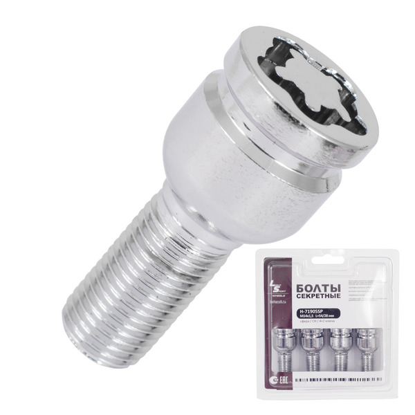 LS (Крепеж) Болт секретный LS 14х1.5 54/28 блистер 4+2 сфера хром 71905SP